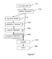 Figure 6 shows an implementation of the PEP 200 to comply with the anonymisation policy (prior to its enhancement) prior to an administrator adding extra logging capabilities to make it appropriate for use in the present embodiment. The Vordel gateway and associated configuration software tools enable functionality within the gateway to be added by building a chain of blocks referred to as filters. In the present example the chain of filters used to implement the basic anonymisation function (prior to additional logging capabilities being added) comprises four filter blocks illustrated as a look for "lastname" filter F10, an anonymise "lastname" filter F20, a look for "firstname" filter F30 and an anonymise "firstname" filter F40. The chain is terminated in the standard manner in which chains of Vordel filter blocks are terminated with a so called reflect block F50 which simply returns the message processing to the stage which called the chain. As suggested by the names of the above filters, the look for "lastname" filter F10 inspects an input XML record (e.g. a SOAP message) and looks within it for a tag called "lastname", if it finds such a tag in the examined XML record it proceeds to the anonymise "lastname" filter F20 in which the content of the field tagged with "lastname" is modified to "xxxxx" and then the record is passed to the look for "firstname" filter F30. If no tag called "lastname" is identified by filter F10, then the record is, in this embodiment, passed straight to the reflect filter F50 (the assumption being that if no lastname tag is found no firstname tag will be found either). At the filter F30 a tag called "firstname" is searched for and if one is found the record is passed to the anonymise "firstname" filter F40 in which the content of the field tagged with "firstname" is modified to "xxxxx" and then the record is passed to the reflect filter F50. If no such tag is identified by filter F30 then filter F40 is bypassed and the record is passed directly to the reflect filter F50.