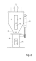 - the delivery line 15 opens in the top of the upper granulate intermediate container 9, which - as better in the FIGS. 1 and 2 is recognizable - is designed as a removable cover 27, and the conveying air 3 leaves the granular intermediate container 9 through an existing in the rear outlet opening 18.