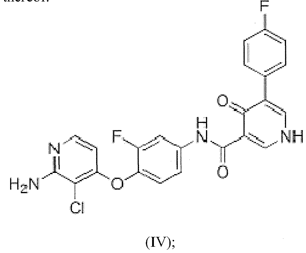 - BMS 794833 as shown in formula (IV) or a pharmaceutically acceptable salt, solvate or hydrate thereof;