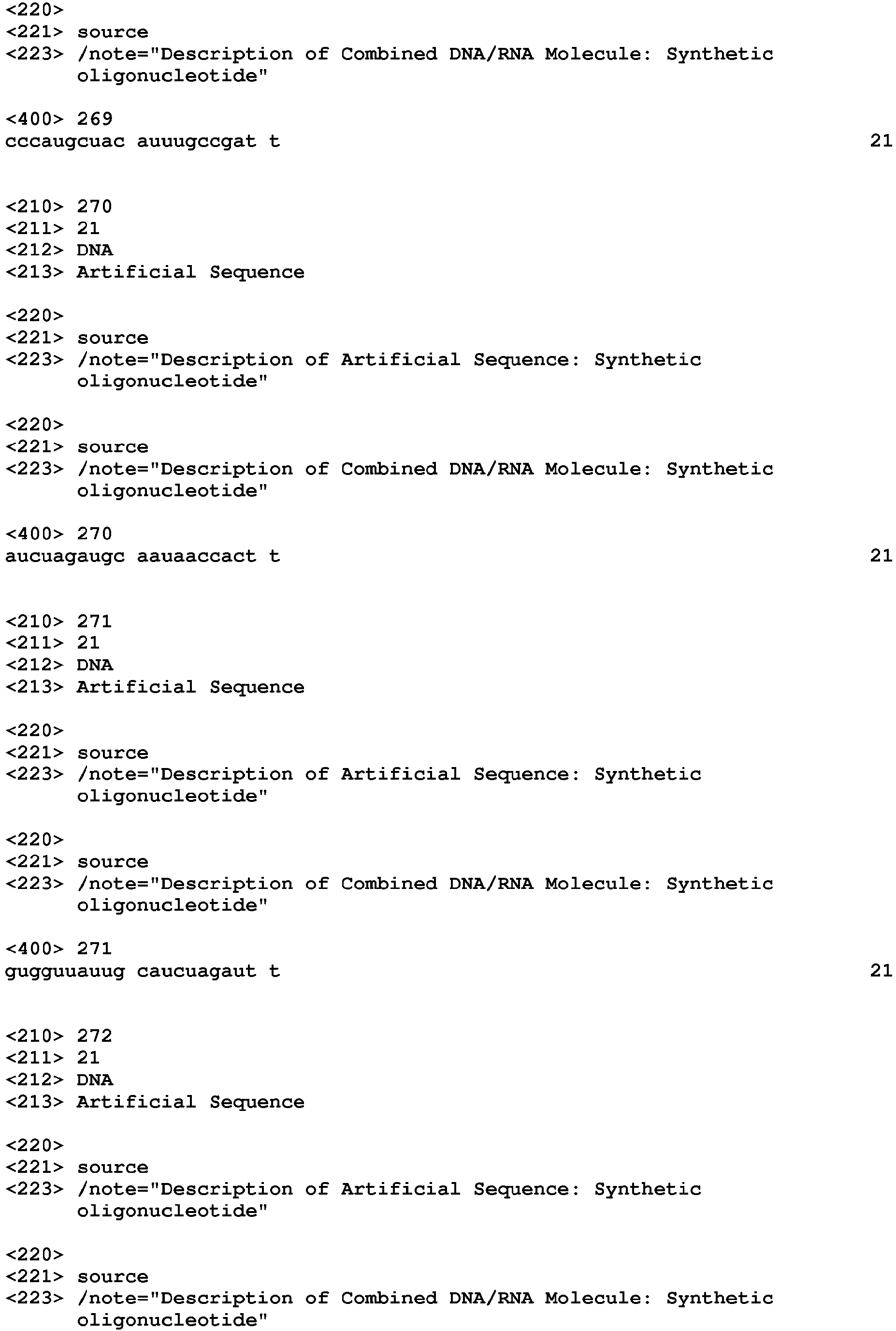 - a second sequence is selected from the group consisting of the antisense sequences of Tables 5, 6, 7, and 8.
