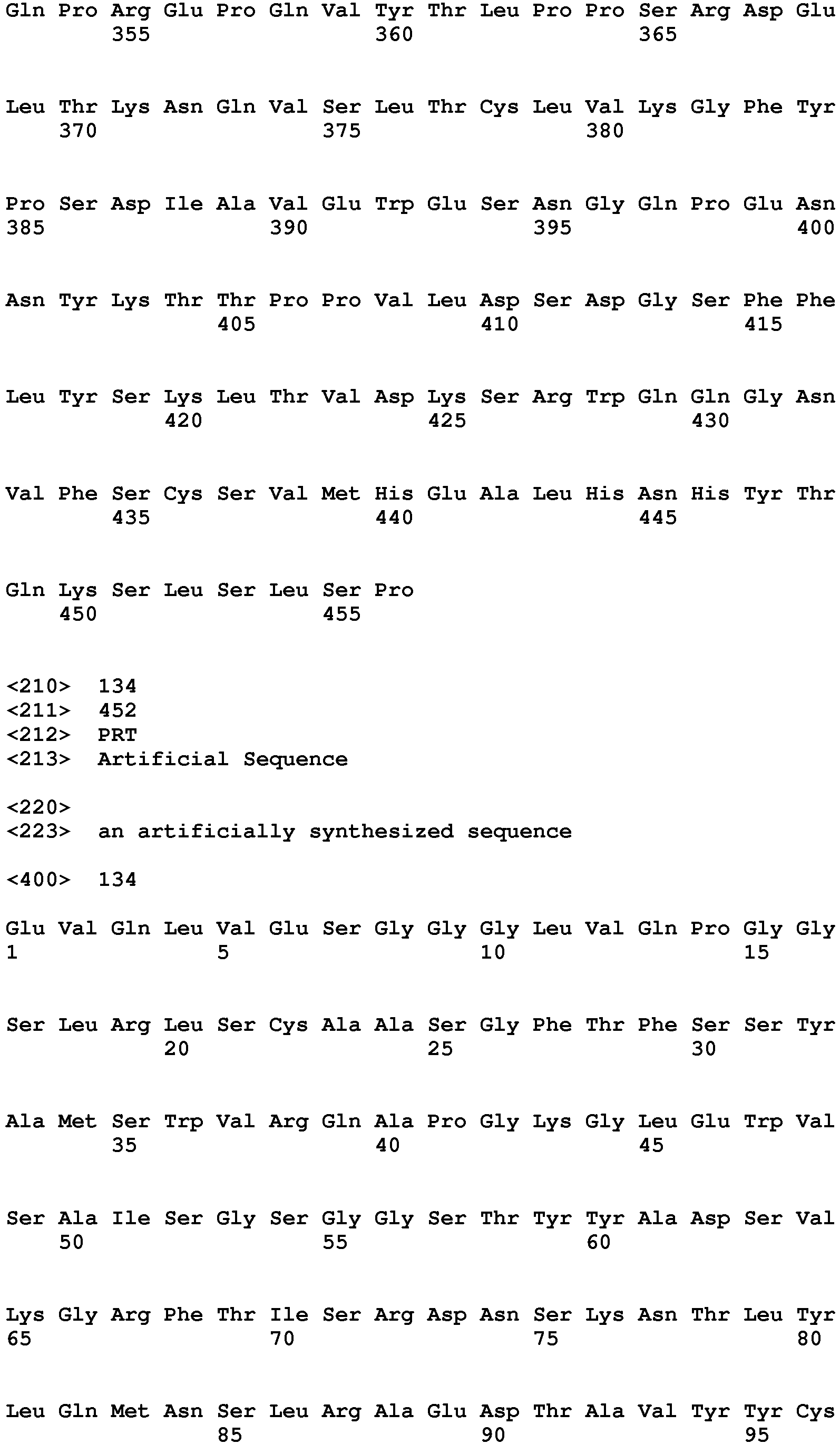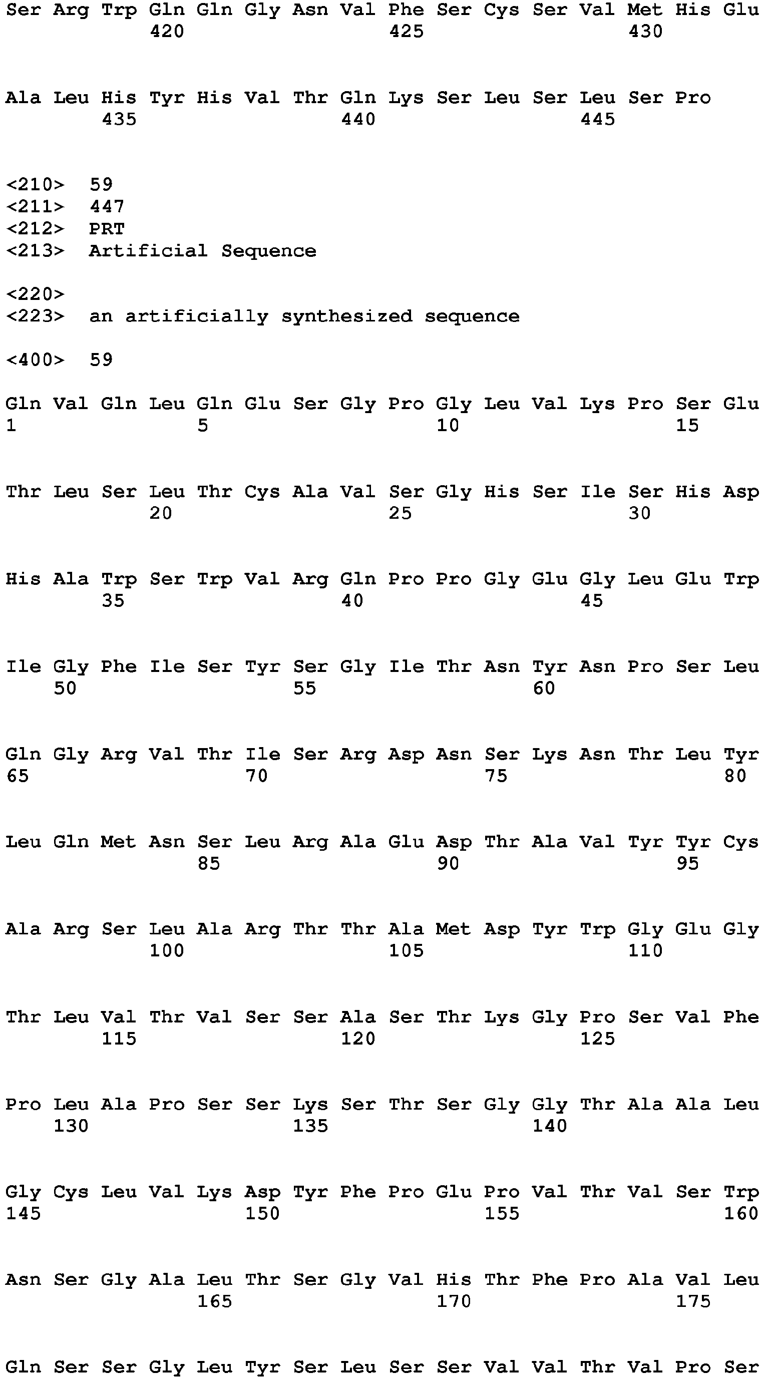 - Non-patent Document 14 isoforms Fc ⁇ RIa, Fc ⁇ RIIa, Fc ⁇ RIIb, Fc ⁇ RIIIa, and Fc ⁇ RIIIb are known, and their allotypes have also been reported (Non-patent Document 14). Two allotypes have been reported for human Fc ⁇ RIIa: Arg (hFc ⁇ RIIa(R)) and His (hFc ⁇ RIIa(H)) at position 131. Furthermore, two allotypes have been reported for human Fc ⁇ RIIIa: Val (hFc ⁇ RIIIa(V)) and Phe (hFc ⁇ RIIIa(F)) at position 158. Meanwhile, for the mouse Fc ⁇ R protein family, Fc ⁇ RI, Fc ⁇ RIIb, Fc ⁇ RIII, and Fc ⁇ RIV have been reported (Non-patent Document 15).