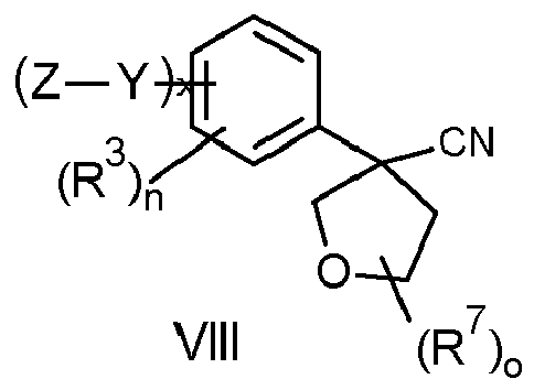 - a further embodiment of the present invention is compounds of formula VIII (see above), wherein variables Z, Y, R 3 , R 7 , n, o are as defined and preferably defined for formula I herein.