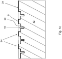 - the substrate 10 which is in the range of 300 ⁇ m thick, is provided with a very thin oxide layer 12 (of the order of 1 ⁇ m thick), see Fig. 1a (the presence of the oxide before further processing of the wafer is indicated with a broken line), suitably a thermal oxide provide by heating in an oxidizing atmosphere.