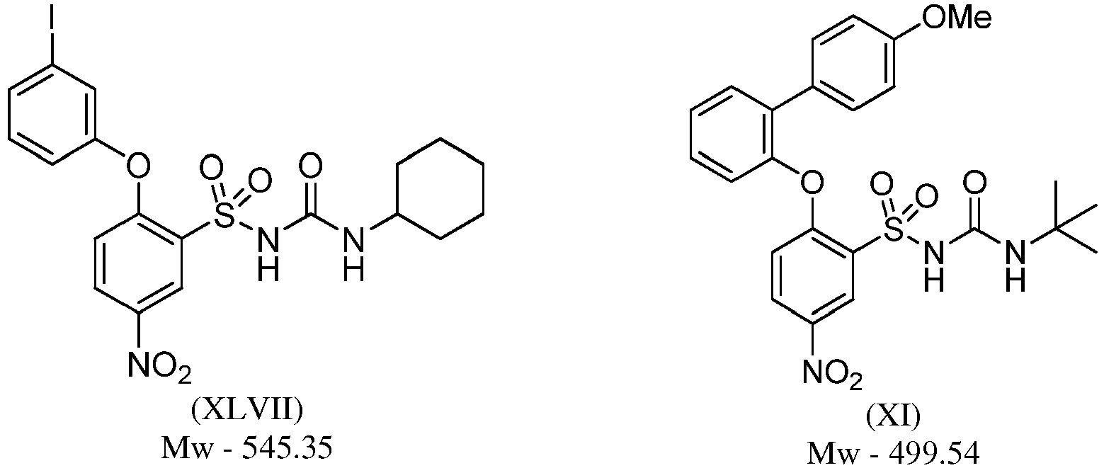 - OHSWDLWDJGWPNO-UHFFFAOYSA-N [O-][N+](c(cc1S(NC(NC2CCCCC2)=O)(=O)=O)ccc1Oc1cc(I)ccc1)=O Chemical compound [O-][N+](c(cc1S(NC(NC2CCCCC2)=O)(=O)=O)ccc1Oc1cc(I)ccc1)=O OHSWDLWDJGWPNO-UHFFFAOYSA-N 0.000 description 1