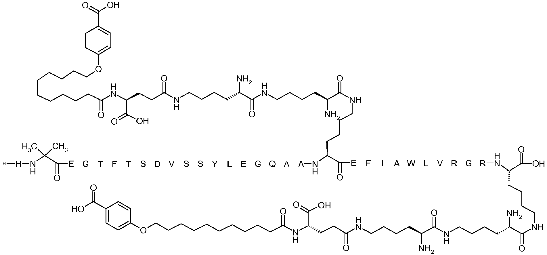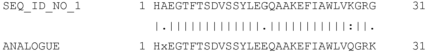 - sequence no. 2 (ANALOGUE) is the analogue (8Aib, 22E, 34Q, 37K) thereof: