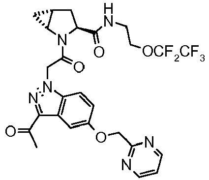 - YQDYAUKDLBWOHF-HBGVWJBISA-N CC(c(c1c2)n[n](CC(N([C@H](C3)[C@H]3C3)[C@@H]3C(NCCCOC(F)(F)F)=O)=O)c1ccc2OCc1ncccn1)=O Chemical compound CC(c(c1c2)n[n](CC(N([C@H](C3)[C@H]3C3)[C@@H]3C(NCCCOC(F)(F)F)=O)=O)c1ccc2OCc1ncccn1)=O YQDYAUKDLBWOHF-HBGVWJBISA-N 0.000 description 1
