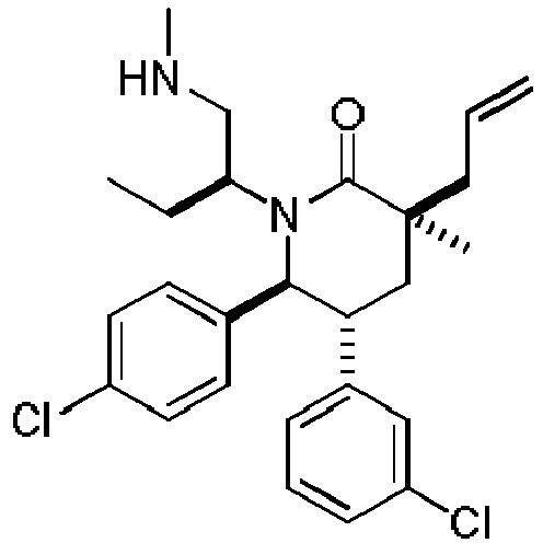 - GARXJWGJBNJRJL-ATPQGXJXSA-N CCC(CC)N([C@@H]([C@H](CC1(CC)CC=C)c2cccc(Cl)c2)c(cc2)ccc2Cl)C1=O Chemical compound CCC(CC)N([C@@H]([C@H](CC1(CC)CC=C)c2cccc(Cl)c2)c(cc2)ccc2Cl)C1=O GARXJWGJBNJRJL-ATPQGXJXSA-N 0.000 description 1