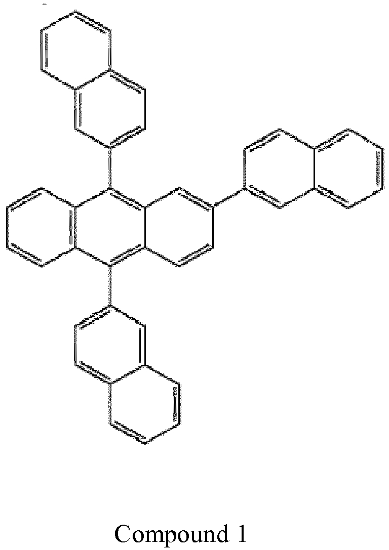 - an anthracene based compound or a heteroaryl substituted anthracene based compound, preferably 2-(4-(9,10-di(naphthalen-2-yl)anthracene-2-yl)phenyl)-1-phenyl-1H-benzo[d]imidazole and/or N4,N4"-di(naphthalen-1-yl)-N4,N4"-diphenyl-[1,1':4',1"-terphenyl]-4,4"-diamine;