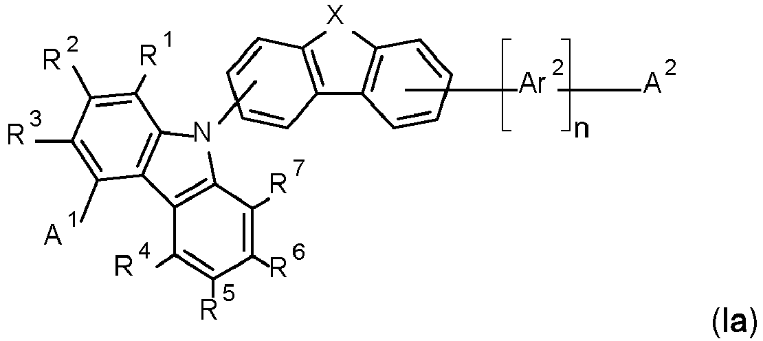 - the 2,5-disubstituted benzimidazo[1,2-a]benzimidazole derivatives are suitable hole transporting materials, or host materials for phosphorescent emitters.