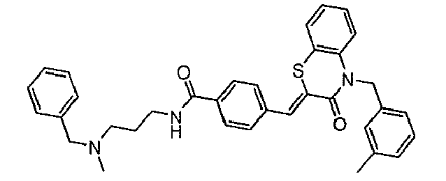 - LMCYHBAQCSMHHI-SXBRIOAWSA-N CCCCN(CCCC)CCNC(c1ccc(/C=C2\Sc3ccccc3N(Cc3cccc(Cl)c3)C2=O)cc1)=O Chemical compound CCCCN(CCCC)CCNC(c1ccc(/C=C2\Sc3ccccc3N(Cc3cccc(Cl)c3)C2=O)cc1)=O LMCYHBAQCSMHHI-SXBRIOAWSA-N 0.000 description 1
