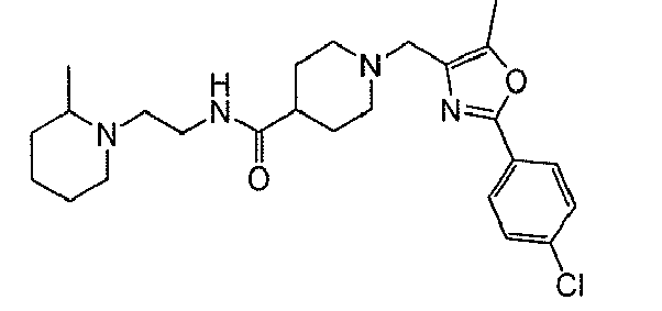 - IVJSYJDLPMWRJM-UHFFFAOYSA-N Cc1c(CN(CC2)CCC2C(NCCCN(C)Cc2ccccc2)=O)nc(-c(cc2)ccc2Cl)[o]1 Chemical compound Cc1c(CN(CC2)CCC2C(NCCCN(C)Cc2ccccc2)=O)nc(-c(cc2)ccc2Cl)[o]1 IVJSYJDLPMWRJM-UHFFFAOYSA-N 0.000 description 1