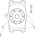 - the implant body can further include an outer hole region substantially outside an outer perimeter of the mask.