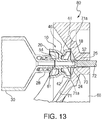 - the female portion 56 has an interior sealing surface 57 that tapers towards the male end 26, and also has a diametrically flared end 60 dimensioned to receive a corresponding male end 26 of an adjacent cap 10 when multiple caps are nested together, as in a tubular package incorporated in a magazine of the apparatus ( FIG. 10 ). Nesting of the caps 10 helps to maintain the sterility of the female portion 56.