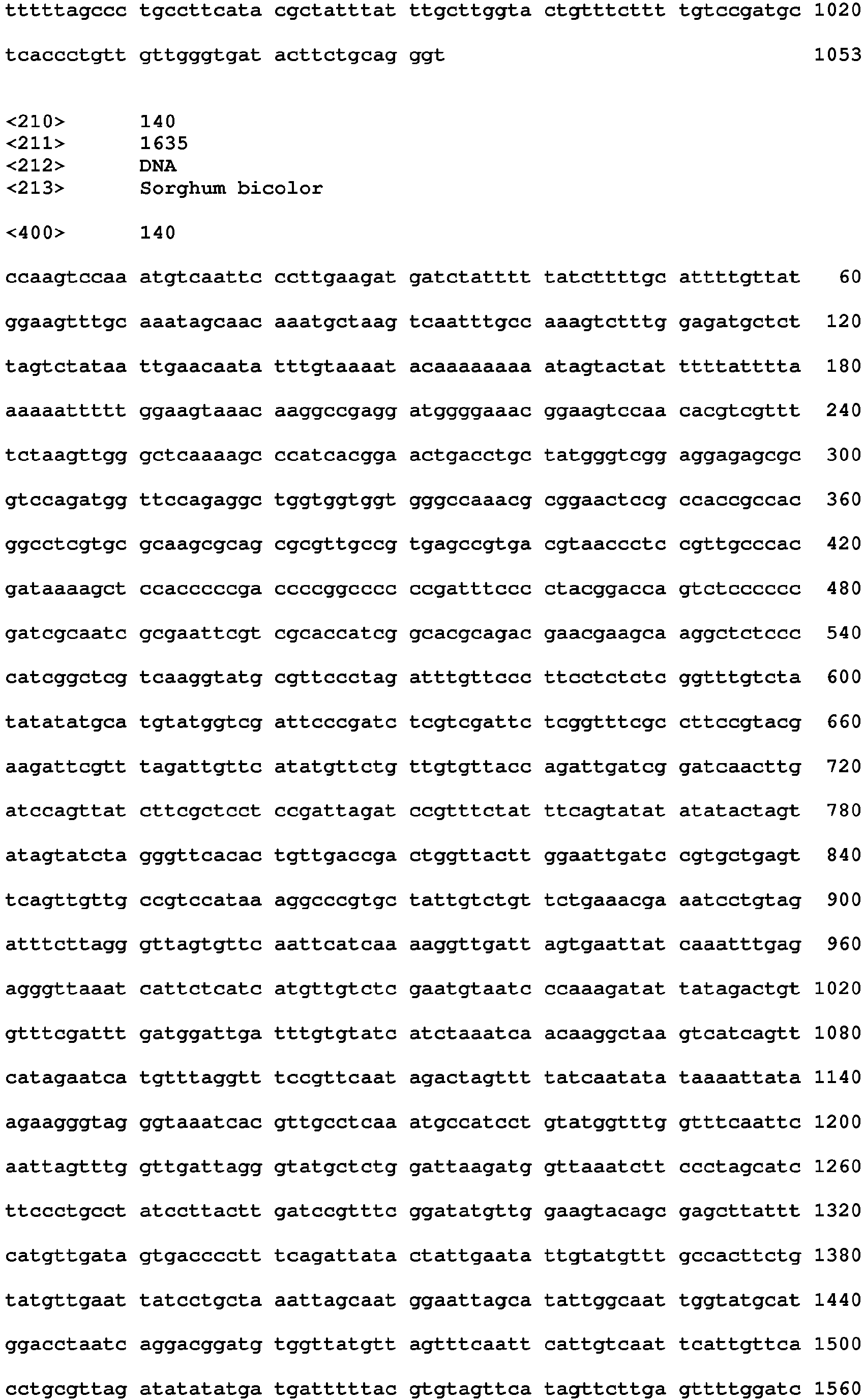 - SEQ ID NOs: 4, 12, 15, 20, 26, 29, 37, 40, 48, 51, 54, 57, 59, 65, 69, 81, 91, 94, 102, 105, 113, 115, 125, 127, 131, 133, 137, 139, 143, 147, 149, 153 and 171 are intron sequences.