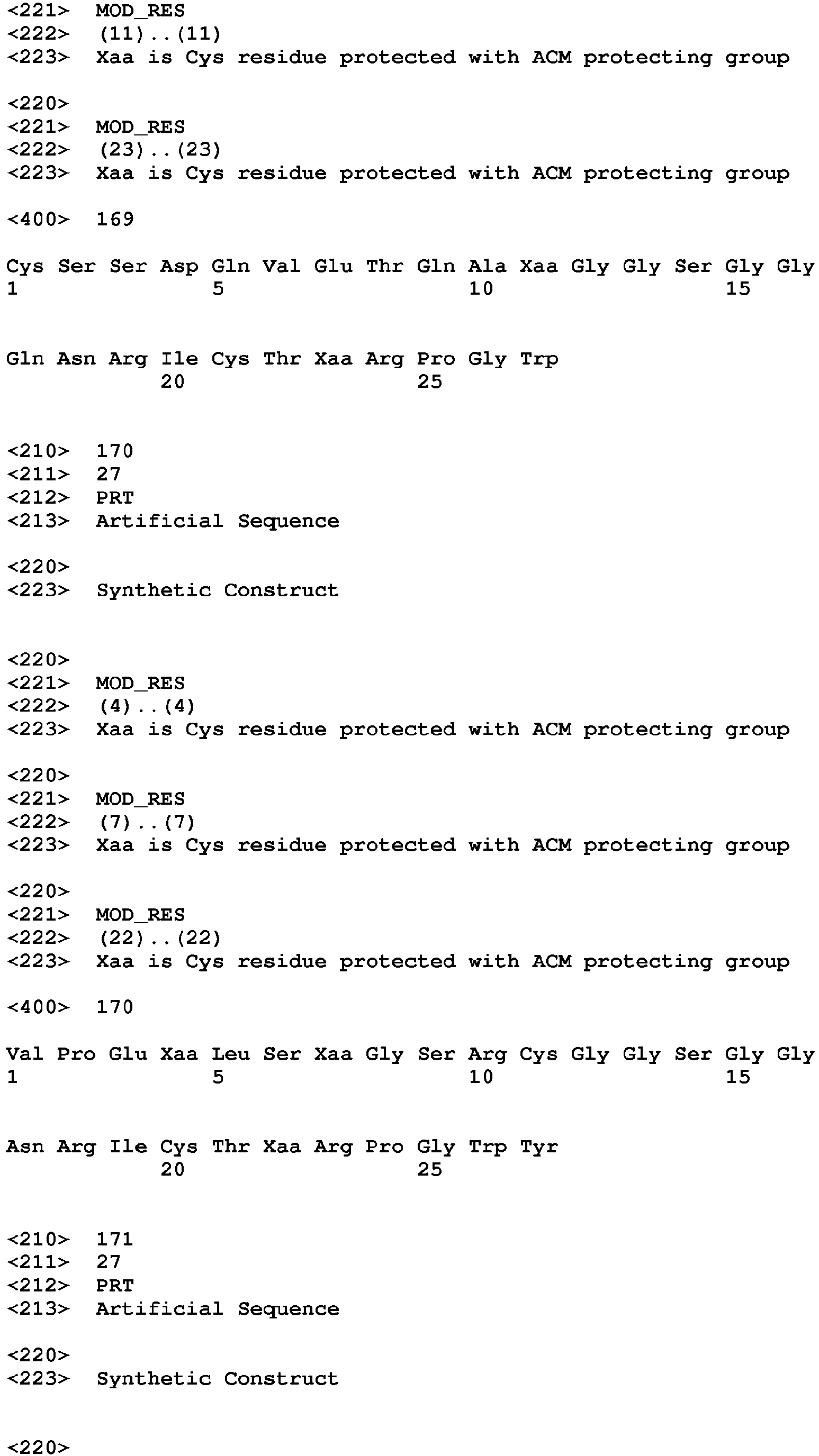 - the CDR-L2 of the antibody or antigen-binding fragment thereof has the amino acid sequence TYS. In some embodiments, the CDR-L2 of the antibody or antigen-binding fragment thereof has the amino acid sequence YTS. In some embodiments, the CDR-L3 has the amino acid sequence CLQYVNLLT (SEQ ID NO: 272). In some embodiments, the CDR-L3 has the amino acid sequence CLQYVNLIT (SEQ ID NO: 273).