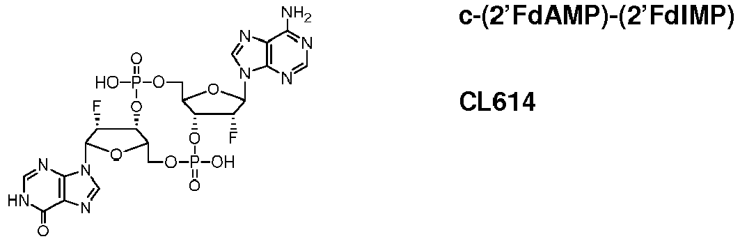 | ZHANG, X.SHI, H.WU, J.ZHANG, X.SUN, L.CHEN, C.CHEN, Z. J.: "Cyclic GMP-AMP containing mixed phosphodiester linkages is an endogenous high-affinity ligand for STING", MOL CELL, vol. 51, no. 2, 2013, pages 226 - 235, XP055300246, DOI: doi:10.1016/j.molcel.2013.05.022 |