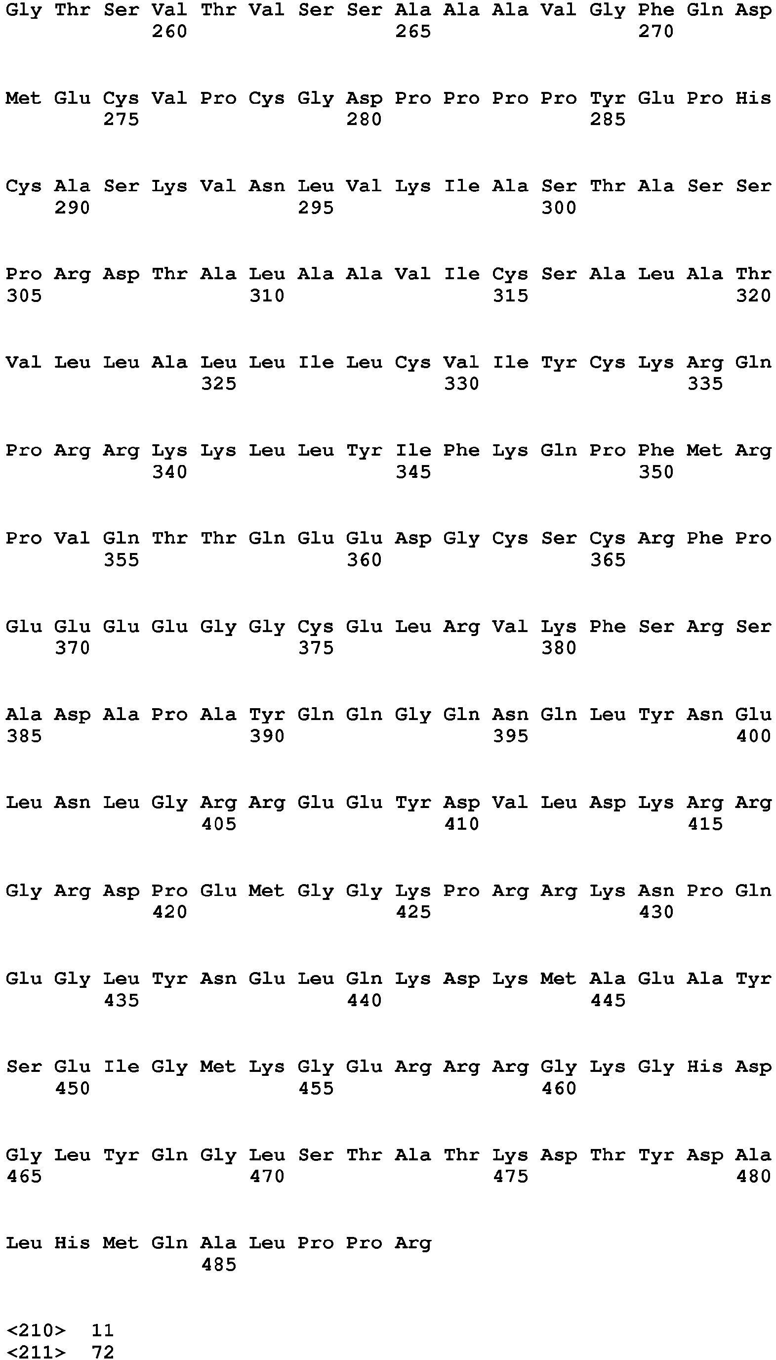 - SEQ ID NO: 5 is the nucleotide sequence of leader/signal peptide sequence atgctgctgctggtgaccagcctgctgctgtgcgaactgccgcatccggcgtttctgctgattccg