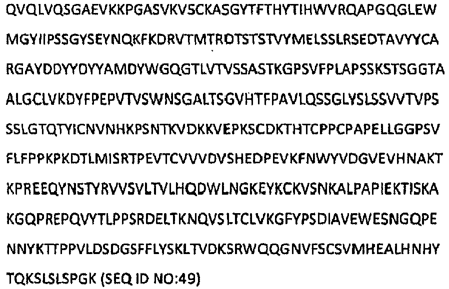 - the heavy chain CDRs of the antibody are represented in SEQ ID NOs:1, 2, and 3 and the light chain CDRs are represented in SEQ ID NOs: 4, 5, and 6.