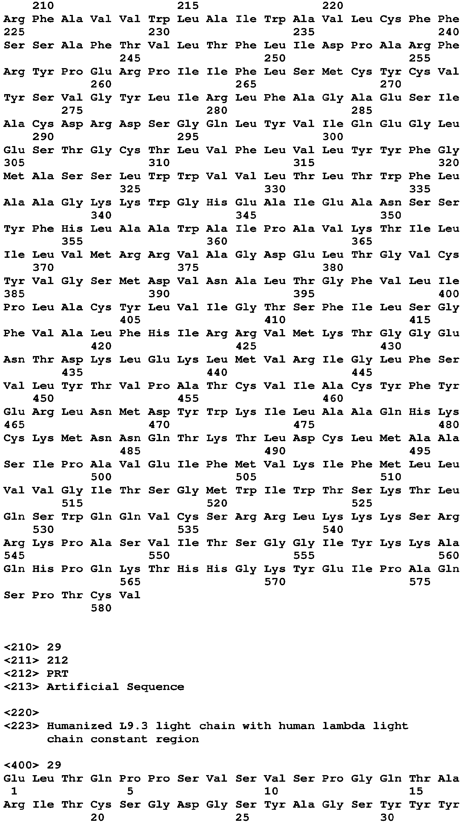 - a humanized antibody, or antigen-binding fragment thereof, as described herein comprises a light chain comprising the amino acid sequence set forth in SEQ ID NO:29 and a heavy chain comprising the amino acid sequence set forth in SEQ ID NO:31.