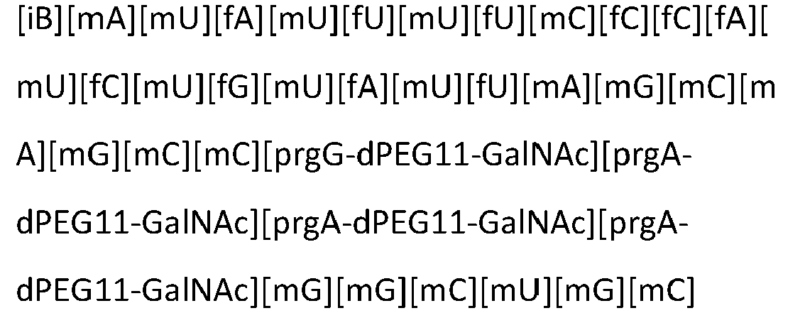| SETH ET AL.: "Targeted delivery of antisense oligonucleotides to hepatocytes using triantennary N-acetyl galactosamine improves potency 10-fold in mice", NUCLEIC ACIDS RES, vol. 42, no. 13, July 2014 (2014-07-01), pages 8796 - 807, XP055148318, DOI: 10.1093/nar/gku531 |