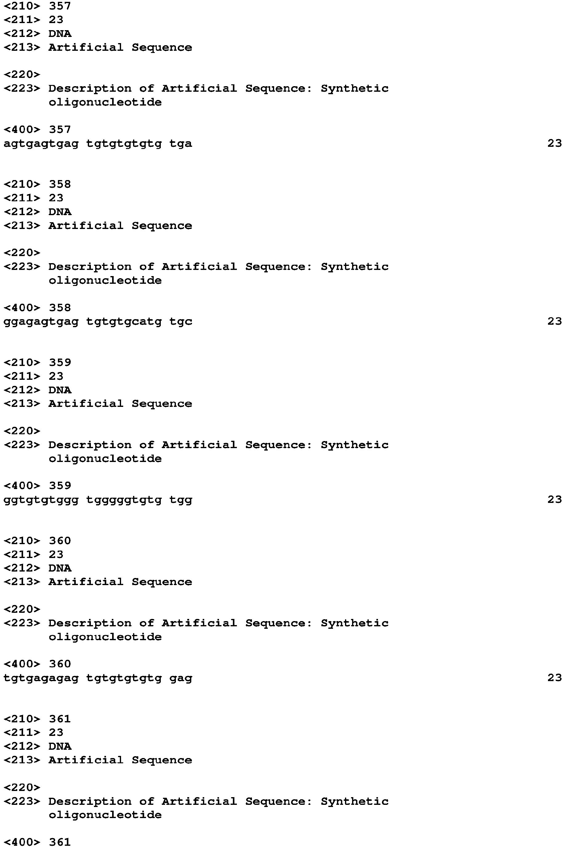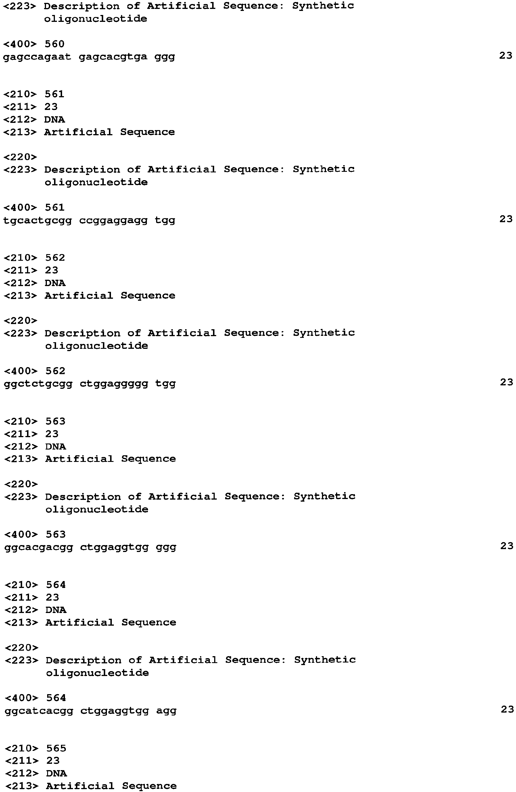 | RUNX1 NGA 3-20 | 20 | GAGATGTAGGGCTAGAGGGG | 71 | GAGATGTAGGGCTAGAGGGGTGAG | 72 |