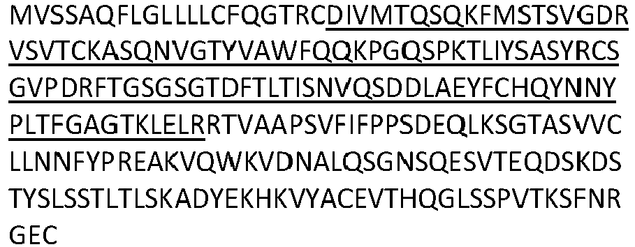 - (61) The antibody or functional fragment of any one of items (59) to (60), wherein CL domain comprises, or consists of, an amino acid sequence having a sequence identity of at least 80 %, preferably at least 90 %, more preferably at least 92 %, even more preferably at least 94%, even more preferably at least 95 %, even more preferably at least 96 %, even more preferably at least 97 %, even more preferably at least 98 %, even more preferably at least 99 %, to the amino acid shown in SEQ ID NO:60.