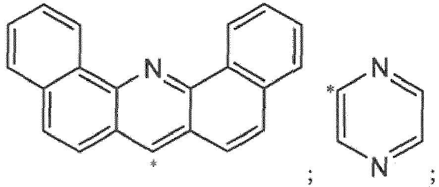 - wherein each Z may be substituted with one or two substituents independently selected from the group consisting of C6 to C12 aryl and C1 to C6 alkyl, D, C1 to C6 alkoxy, C3 to C6 branched alkyl, C3 to C6 cyclic alkyl, C3 to C6 branched alkoxy, C3 to C6 cyclic alkoxy, partially or perfluorinated C1 to C6 alkyl, partially or perfluorinated C1 to C6 alkoxy, partially or perdeuterated C1 to C6 alkyl, partially or perdeuterated C1 to C6 alkoxy, halogen, CN or PY(R10)2, wherein Y is selected from O, S or Se, preferably O, and R10 is independently selected from C6 to C12 aryl, C3 to C12 heteroaryl, C1 to C6 alkyl, C1 to C6 alkoxy, partially or perfluorinated C1 to C6 alkyl, partially or perfluorinated C1 to C6 alkoxy, partially or perdeuterated C1 to C6 alkyl, partially or perdeuterated C1 to C6 alkoxy;