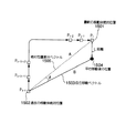 Next, an error estimating method of the moving object absolute moving direction error estimating means 1009 in the fourth embodiment will be described with reference to FIG. In FIG. 11, the moving object absolute position difference vector 1101 is a two-point P at different times t1 and t2 detected by the moving object absolute position detecting means 1002. 1 , P 2 Are absolute position difference vectors, and the moving body absolute position errors 1102 and 1103 are two points P 1 , P 2 Represents the absolute position error estimated by the moving body absolute position error estimating means 1003 at the moving body absolute position. At this time, the maximum azimuth error 1104 included in the moving object absolute position difference vector 1101 is geometrically calculated using the length of the moving object absolute position difference vector 1101 and the moving object absolute position errors 1102 and 1103, respectively. be able to. The azimuth error 1104 decreases as the distance of the moving object absolute position difference vector 1101 increases.