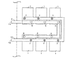 さらに、全ての供給口6に接合された可撓性供給パイプ16は、長さを等しくしている。また、全ての戻り口7に接合された可撓性戻りパイプ17も、長さを等しくしている。これらの長さは、後で説明する分岐装置19、20から最も遠いパイプユニット1の供給口6や戻り口7までの距離と、ほぼ同等かそれよりも若干長くしている。