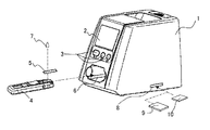 そこで上述の測定装置においては、事前にばらつき量を把握して較正データを準備しておき、濃度等の測定後にこの較正データを用いて演算することで、正確な測定値を得ることがなされている。このような較正データの測定装置への供給方法としては、測定装置に設けたキーパッド等の入力手段により使用者が入力する方法がある(例えば特許文献1参照)。 Therefore, in the above-described measuring apparatus, it is possible to obtain accurate measurement values by grasping the amount of variation in advance and preparing calibration data, and performing calculations using this calibration data after measuring the concentration and the like. Yes. As a method for supplying such calibration data to the measuring apparatus, there is a method in which the user inputs the data using an input means such as a keypad provided in the measuring apparatus (see, for example, Patent Document 1).