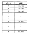 図3は、パーツ表示位置DB18に記憶されたデータの例を示す図である。図3に示すように、パーツ表示位置DB18には、表示画像内におけるパーツの表示位置の座標のデータが記憶されている。パーツ表示位置DB18の座標のデータは、表示部12にてコンテンツを表示する際に取得される。