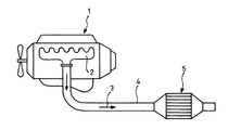 ディーゼルエンジンから排出されるパティキュレート(Particulate Matter:粒子状物質)は、炭素質から成る煤と、高沸点炭化水素成分から成るSOF分(Soluble Organic Fraction:可溶性有機成分)とを主成分とし、更に微量のサルフェート(ミスト状硫酸成分)を含んだ組成を成すものであるが、この種のパティキュレートの低減対策として、図4に示す如く、ディーゼルエンジン1から排気マニホールド2を介して排出された排出ガス3が流通する排気管4の中途部に、酸化触媒を一体的に担持して成る触媒再生型のパティキュレートフィルタ5を装備することが行なわれている。