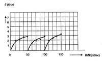 図3は、ドップラー効果に起因する、生体に入射した超音波(第1の超音波)の周波数(第1の周波数)と、生体に入射した後に血管内の血液を経由して生体の外部に出射された超音波(第2の超音波)の周波数(第2の周波数)との差Δfの時間的変化(時間遷移)のデータを示す図である。ただし、図3は、続く解析のために、それぞれの周波数の頻度のピークを結合することにより単純化して得られた分布曲線を示している。 FIG. 3 shows the frequency (first frequency) of the ultrasonic wave (first ultrasonic wave) incident on the living body due to the Doppler effect and the blood inside the blood vessel after being incident on the living body to the outside of the living body. It is a figure which shows the data of the time change (time transition) of difference (DELTA) f with the frequency (2nd frequency) of the emitted ultrasonic wave (2nd ultrasonic wave). However, FIG. 3 shows a distribution curve obtained by simplifying the frequency peaks of the respective frequencies by combining them for the subsequent analysis.