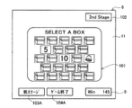そして、オープン状態となった宝箱101が3個になると、ファースト・ステージからセカンド・ステージが展開される。このとき、下側画像表示パネル6では、ファースト・ステージの画面と同様にして、クローズ状態にある23個の宝箱101が設けられたセカンド・ステージの画面が表示される。セカンド・ステージでも、タッチパネル11を介して、3個の宝石箱101をプレイヤーは選択することができる。そして、下側画像表示パネル6では、プレイヤーによって宝箱101が選択されると、その宝箱101がクローズ状態からオープン状態となる。さらに、下側画像表示パネル6では、図1の中段左側や中段右側に示すようにして、そのオープン状態となった宝箱101に対応付けられた配当の額が、当該宝箱101に重ねて表示され、その表示された配当の額がプレイヤーに付与される。すなわち、セカンド・ステージでも、ファースト・ステージと同様な選択式のゲームが行われる。