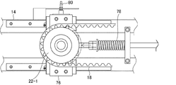 更に、レール(64)の外側で該レールに沿って延び、無端歯付きベルト(18)に該生地保持部材(24)が接続されていない状態において該歯付きプーリ(22)にかけられたときに、該レール(64)の外側に位置する無端歯付きベルト(18)の部分と係合して該部分を支持する補助レール(72)を有するようにすることができる。 Furthermore, when it is applied to the toothed pulley (22) in a state where the cloth holding member (24) is not connected to the endless toothed belt (18), extending along the rail outside the rail (64). And an auxiliary rail (72) for engaging and supporting a portion of the endless toothed belt (18) located outside the rail (64).