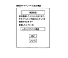 図11は、追加確認画面の例を示す図である。追加確認画面には、ステップS242で取得されたイベント名が表示され、ユーザは登録済みのイベント名を確認することができる。ユーザが画面の「はい」を選択することで、スケジュール連動機能101は、今回の撮影を前回登録済みのイベントデータと関連づける処理に進み、「いいえ」を選択することで、次の新規なイベント名の登録のための処理に進む。 FIG. 11 is a diagram illustrating an example of an addition confirmation screen. The event name acquired in step S242 is displayed on the addition confirmation screen, and the user can confirm the registered event name. When the user selects “Yes” on the screen, the schedule linkage function 101 proceeds to a process of associating the current shooting with the previously registered event data, and by selecting “No”, the next new event name Proceed to the process for registration.
