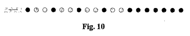図9及び10に示されているように、開始部分の左側及び終了部分の右側にいくつかの灰色の点が付加されている。これらの灰色の点は、最初の黒い点(図4)及び最後の黒い点(図5)のコピーを表す。そして、総ての点は、中央部分の点が補間されるのと同じ方法で補間されることが可能である。例えば、最初の白い点は、それに先行する位置の2番目ないし6番目の灰色の点及び黒い点と、その白い点の後の6つの黒い点とを使用して、フィルタリングを実行することができる。 As shown in FIGS. 9 and 10, several gray dots are added to the left of the start and to the right of the end. These gray dots represent copies of the first black dot (FIG. 4) and the last black dot (FIG. 5). And all the points can be interpolated in the same way that the central point is interpolated. For example, the first white point can be filtered using the 2nd to 6th gray and black dots preceding it and the 6 black dots after the white point .
