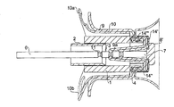 ステイプラーのハンドルに設けた当業者には公知のブレード移動手段(不図示)によって環状ブレード3を前進させて粘膜を切除する。ゴブレット状外殻体2の端部4には、金属製ステイプル等の縫合手段を収納する収納部4aを設けてもよい。図2では、ステイプラーのヘッド部分が開位置で、フランジ10a、10bを備えた中空筒状の導入部材10を通して管状臓器9の中に挿入されている。