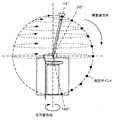 同様にして、アーム22bを30°に設定し、回転台20aを15°ステップで回転させて、30°の位置にある測定用アンテナ21bに対する、24箇所を走査する。このような走査をアーム22bが165°になるまで行うので、球面1回分の測定ポイント走査では、264箇所の走査を行うことになる。