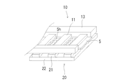 (1)フライングリード11と端子21との導電接続は、ACF5を間に介在させることで実現されている。
