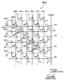 図4において、ビット線対BL2、BL3、および、ビット線対BL4、BL5に接続されたメモリセルMCの構成は、ビット線対BL0、BL1に接続されたメモリセルMCの構成と同様である。即ち、ビット線対BL0、BL1に接続されたメモリセルMCの構成が、ロウ方向に繰り返し形成されている。従って、ここでは、ビット線対BL0、BL1に関するメモリセルMCの構成を説明し、その他のビット線対に関するメモリセルMCの構成については省略する。 In FIG. 4, the configuration of the memory cell MC connected to the bit line pair BL2, BL3 and the bit line pair BL4, BL5 is the same as the configuration of the memory cell MC connected to the bit line pair BL0, BL1. That is, the configuration of the memory cells MC connected to the bit line pairs BL0 and BL1 is repeatedly formed in the row direction. Therefore, here, the configuration of the memory cell MC related to the bit line pair BL0, BL1 will be described, and the configuration of the memory cell MC related to the other bit line pairs will be omitted.