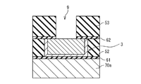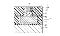 第1配線3は、基板70a上に設けられている。第1配線3は、例えば第1メタル配線31とそれを側方及び底面において覆うバリアメタル層32とを備えている。ただし、基板70aは、表面領域に素子を形成された半導体基板と、その半導体基板を覆う第1層間絶縁膜や第1キャップ絶縁膜61を備えている。第1層間絶縁膜及び第1キャップ絶縁膜61は第1層間絶縁層ということもできる。従って、第1配線3は、第1層間絶縁層上に設けられている。第1配線3は、第2層間絶縁膜52に埋設され、第2キャップ絶縁膜62に覆われている。第2層間絶縁膜52及び第2キャップ絶縁膜62は第2層間絶縁層ということもできる。従って、第1配線3は、第2層間絶縁層に埋設されている。