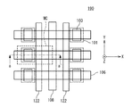 一般的に、抵抗変化型メモリの1つのメモリセルは、1つの制御用トランジスタと1つの抵抗変化素子を備えている。そのようなメモリセルを有する抵抗変化型メモリは、1T1R型ともいわれている。図1は、従来の1T1R型の抵抗変化型メモリの構成を示す平面図である。1T1R型の抵抗変化型メモリ190は、複数のワード線(又はゲート)122と、複数のビット線(又は第2配線)106と、複数の共通線108と、複数のメモリセルMCとを具備している。複数のワード線(又はゲート)122は、Y方向に延在している。ビット線(又は第2配線)106は、X方向に延在している。共通線108は、Y方向に延在しいている。複数のメモリセルMCは、複数のワード線122と複数のビット線106との交点の各々に対応して設けられている。