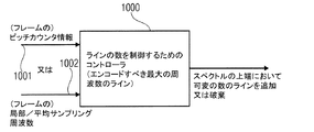 一般に、信号の(基本)ピッチは、信号のスペクトルから識別することができる最も低い優位周波数(dominant frequency)と理解されるべきである。一般的なスピーチモデルにおいては、ピッチは人間ののどによって変調された励起信号の周波数である。ただ1つの基本周波数だけが存在すると考えられる場合、スペクトルはきわめて単純になり、基本周波数及び倍音だけを含むと考えられる。そのようなスペクトルは、きわめて効率的にエンコードすることが可能である。しかしながら、ピッチが変化する信号においては、各々のハーモニック成分に対応するエネルギーが、いくつかの変換係数にわたって広がり、コーディング効率が低下する結果となる。 In general, the (basic) pitch of a signal should be understood as the lowest dominant frequency that can be distinguished from the spectrum of the signal. In a typical speech model, the pitch is the frequency of the excitation signal modulated by the human throat. If only one fundamental frequency is considered to be present, the spectrum is very simple and is considered to contain only the fundamental frequency and harmonics. Such a spectrum can be encoded very efficiently. However, in a signal whose pitch changes, the energy corresponding to each harmonic component spreads over several transform coefficients, resulting in a decrease in coding efficiency.