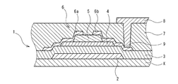ゲート電極2は、基板Xの表面に形成され、導電性を有する。ゲート電極2を構成する薄膜としては、特に限定されないが、Al、Cu、Mo等の金属薄膜やこれらの合金の薄膜、ITO(Indium Tin Oxide)、ZnO等の透明導電膜などが挙げられる。また、ゲート電極2は、これら金属薄膜の単層構造であってもよく、2種以上の金属薄膜を積層した多層構造であってもよい。