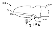 以下、縫合糸(60)を患者内に捕捉し、しっかりと保持するように構成されている、図5〜15C中の様々な針ヘッド(132、232、332、432)を有する縫合糸通し器(100)の様々な実施例について説明する。各針ヘッド(132、232、332、432)は、縫合糸(60)の捕捉及び解放を可能にするように構成されている。更に、縫合糸通し器(100)は、使用中に針ヘッド(132、232、332、432)を覆う及び露出させるための様々な作動機構を含む。以下に記載される縫合糸通し器(100)及び針ヘッド(132、232、332、432)は、上述の様々なトロカールアセンブリ(10)のいずれかと共に、及び本明細書に記載される様々な参考文献に記載されている様々な手順のいずれかで使用することができる。以下の実施例は、上述のトロカールアセンブリ(10)の状況下で提供されるが、以下の教示は、任意の他の外科用アクセス装置及び器具に容易に組み込むことができる。後述する縫合糸通し器(100)が用いられ得る他の好適な方式は、本明細書の教示に鑑みれば当業者には明らかとなろう。 A suture threader having various needle heads (132, 232, 332, 432) in FIGS. 5-15C configured to capture and hold suture (60) within a patient hereinafter. Various examples of (100) will be described. Each needle head (132, 232, 332, 432) is configured to allow capture and release of suture (60). Further, the suture threader (100) includes various actuation mechanisms for covering and exposing the needle heads (132, 232, 332, 432) during use. The suture threader (100) and needle head (132, 232, 332, 432) described below may be used with any of the various trocar assemblies (10) described above, as well as variously described herein. It can be used in any of the various procedures described in the references. Although the following examples are provided in the context of the trocar assembly (10) described above, the following teachings can be readily incorporated into any other surgical access device and instrument. Other suitable ways in which the suture threader (100) described below may be used will be apparent to those of skill in the art in view of the teachings herein.