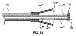 把持要素は、把持要素遠位表面、把持要素近位表面、把持要素円周表面、把持要素内側開口部、および把持要素遠位表面、把持要素近位表面、または把持要素円周表面のうちの少なくとも1つに沿って配設された表面特徴を備える。 The gripping element can be a gripping element distal surface, a gripping element proximal surface, a gripping element circumferential surface, a gripping element medial opening, and a gripping element distal surface, a gripping element proximal surface, or a gripping element circumferential surface. It has surface features arranged along at least one.