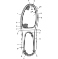 図9を参照すると、靴はさらにミッドソール8を備える。ミッドソール8は、(i)爪先端部10、(ii)ヒール端部12、(iii)内側側部14、および(iv)外側側部16を備える。ミッドソール8の外辺部はアッパー2に縫い合わされる。ミッドソール8がアッパー2に縫い合わされると、それにより、第1シーム22により囲まれた内側部分62に対する底部が形成される。ヒールアウトソールパッチ24はミッドソール8の第1表面のヒール部分に縫い合わされる。爪先アウトソールパッチ26はミッドソール8の第1表面の爪先部分に縫い合わされる。