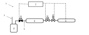 システム1は、様々なエッチングモードで動作することができる。図1において、中間チャンバー4は、気化した反応物質およびキャリアガスで、所望のまたは設定点圧力まで充填されることができ、これは、所望の反応物質の分圧と相関することができる。反応物質蒸気を供給源3で気化させることができる。バルブV1を開ける場合、気化した反応物質とキャリアガスとの混合物を運ぶことができ、反応物質供給ライン6に沿って中間チャンバー4に送達することができる。図2~3に示すように、中間チャンバー4はP1の圧力に充填されることができ、そしてバルブV1を閉じることができる。中間チャンバー4内の気化した反応物質のドーズ量は、式nR=P1V/Tによって決定されることができる。