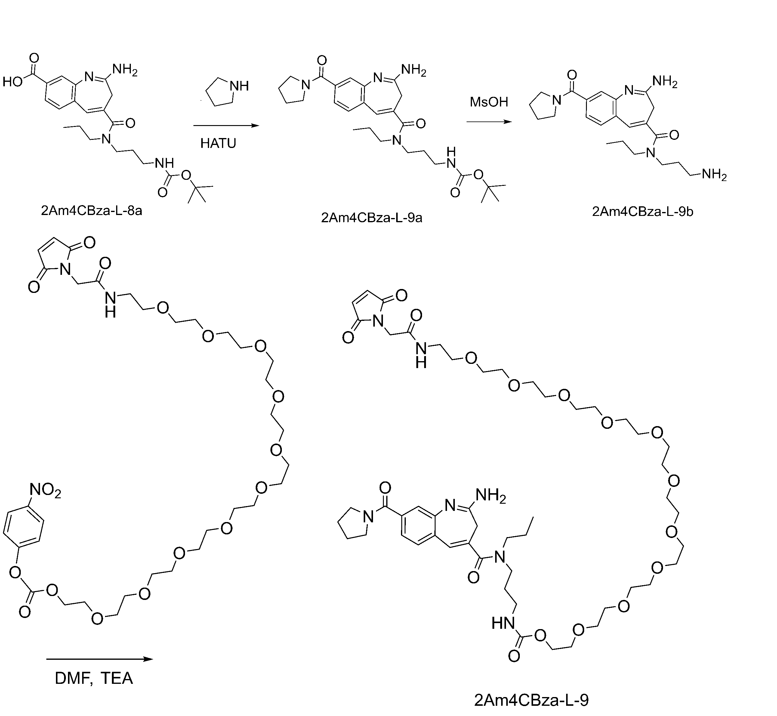 Another aspect of the invention is a 2-amino-4-carboxamide-benzazepine linker compound.